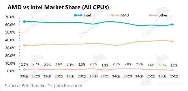 公司寄希望于 AI PC 能成为公司一个新的增长点,然而当前公司在 PC 市场份额仍很低,不足 1%,还难以形成对英特尔和 AMD 的竞争。
