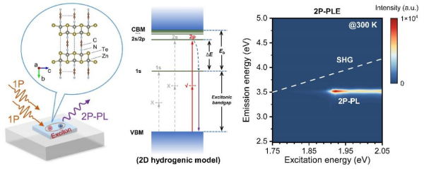 最近,中国科学院半导体研究所研究员谭平恒团队与合作者,利用一种结合单光子荧光与双光子荧光激发光谱的联合测量方法,成功估算了β-ZnTe(en)0.5的激子束缚能。该方法利用了单光子跃迁与双光子跃迁遵循不同选择定则的特性:单光子过程只能探测具有偶宇称的激子态(如1s基态),而双光子过程则可以探测具有奇宇称的激子态(如2p激发态)。通过精确测量1s态与2p态之间的能量差,并基于二维类氢模型进行分析,即可估算所测半导体材料的激子束缚能下限。