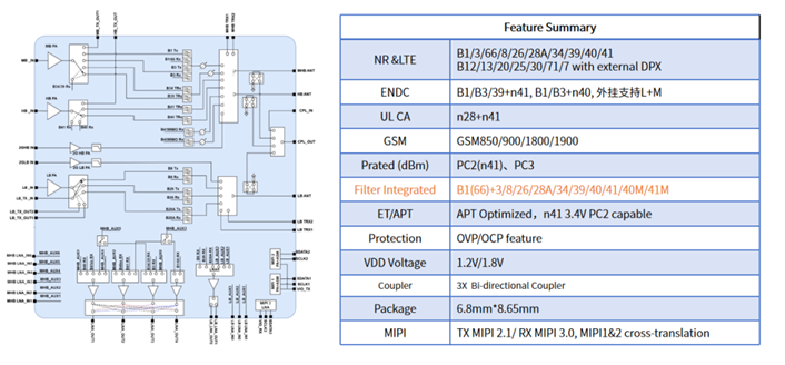 在Phase8L方案中,技术挑战最大的是支持NSA/SA全功能与全球主流载波聚合。此技术需求需要在狭小的模组空间内,解决频段间的相互干扰、散热以及集成度等多项重要难题,是行业里的重要技术难点。
