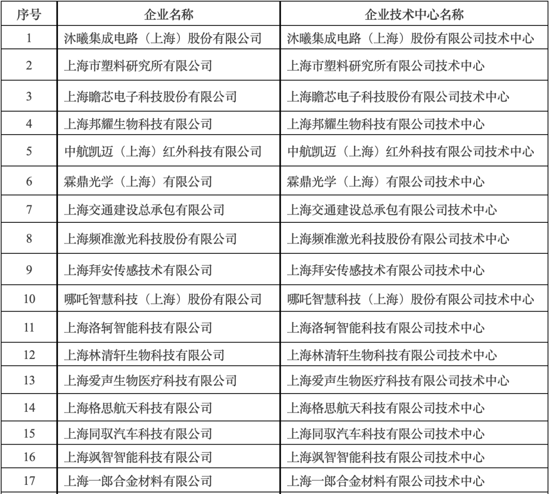 5.上海市第34批市级企业技术中心名单公布,沐曦股份、瞻芯电子等上榜;
