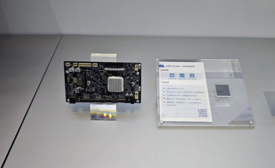 多媒体主控解决方案涵盖采用自研RISC-V CPU的MNT Scaler、画质SoC、XCON、视觉交互SoC等产品,具有系统响应快、画质音质表现好、全栈RISC-V配套软件工具链等优势。其中MNT Scaler以QHD@180Hz高刷新率、4K+Local Dimming画质增强等优势,通过电竞显示器对比演示,体现了RISC-V技术在高端显示领域的突破。