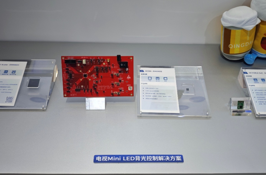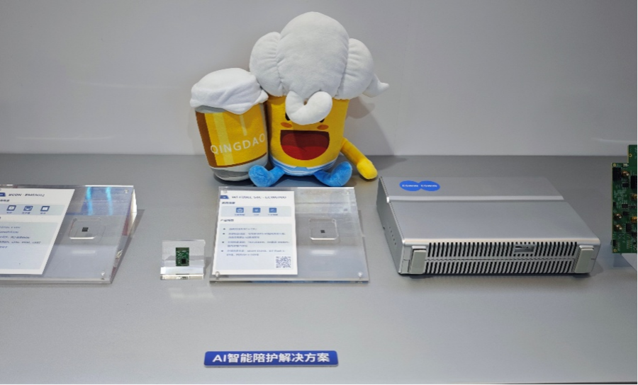 智能连接解决方案涵盖采用自研RISC-V CPU的Wi-Fi/BLE SoC、5G/4G射频收发、车联网V2X SoC及LTE Cat.1 SoC等产品,具有低延迟、低功耗、高可靠性、轻量级AI应用等优势,通过AI语音玩具、板卡等实物演示,生动体现了其在全屋智能与万物互联场景下的广泛适配能力。