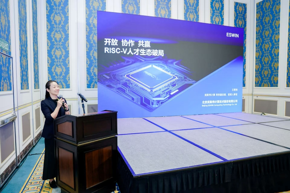 奕斯伟计算常务副总裁、首席人事官王雯琦在人才主题论坛上发表了题为《开放 协作 共赢 RISC-V人才生态破局》的演讲。她深度剖析了RISC-V人才培养在AI时代面临的三大核心挑战:缺乏大师级的资深专家、人才规模总体不足、大学毕业生与岗位适配度有待提升,并分享了奕斯伟计算在人才建设中的具体实践,推出“战训有机结合+深度产教融合+人才标准建设”的RISC-V人才培养体系——对内通过“GROW365成长计划”、“技术沙龙赋能”、“师徒制实战培养”等方式让人才在项目中快速进阶;对外通过“青苗联培计划”、“产教融合基地实践”、“以赛促学”等方式加速人才生态建设。她倡议并呼吁“政校企”联动,从高校教育体系入手,提升RISC-V在教育体系中的可视度,提高大学生解决实际复杂系统级问题的能力,大力推动“芯片-软件-算法”交叉融合的人才培养模式,共同培育RISC-V复合型人才,共促RISC-V产业繁荣。