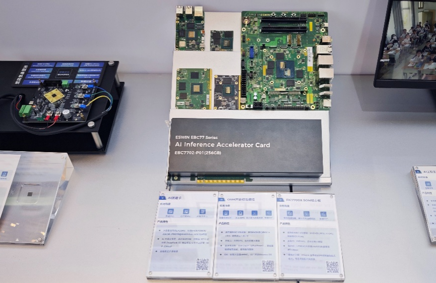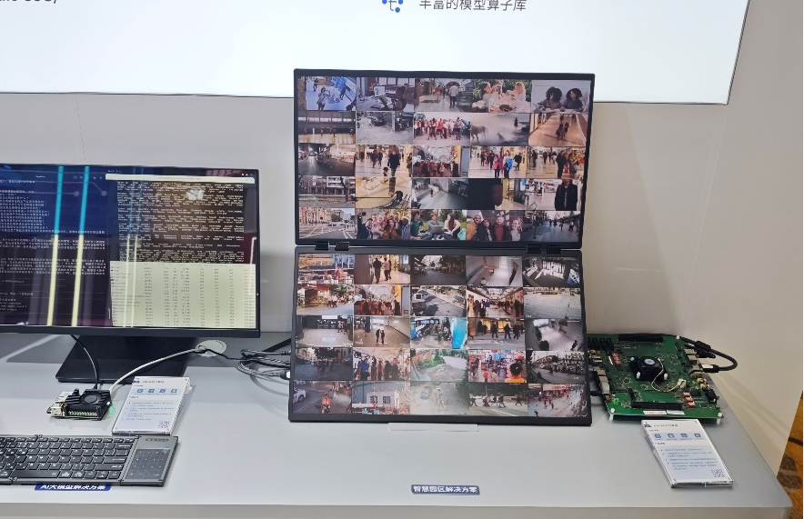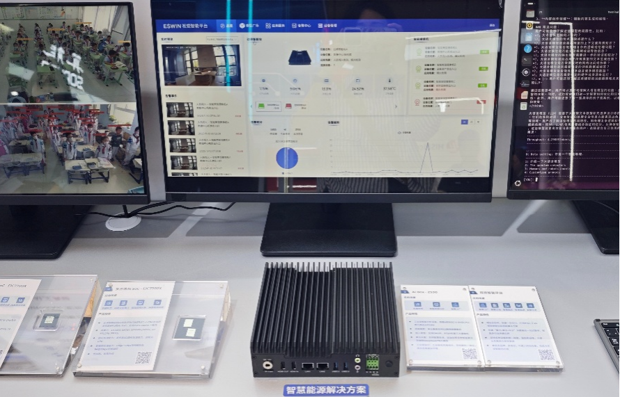 智能计算解决方案提供搭载RISC-V 64位乱序执行CPU及自研高性能NPU的RISC-V边缘计算SoC EIC7700X与多用途智能计算SoC EIC7702X,具有高算力、大容量、低功耗、接口丰富等优势。现场展出了开发板、SBC单板计算机、AI加速卡、AI Box等10款多形态产品,通过50路视频分析演示、AI大模型本地化部署实操、视觉智能平台告警调度演示等互动形式,直观呈现产品40 TOPS的算力表现与全栈浮点计算能力,获得行业客户广泛关注。