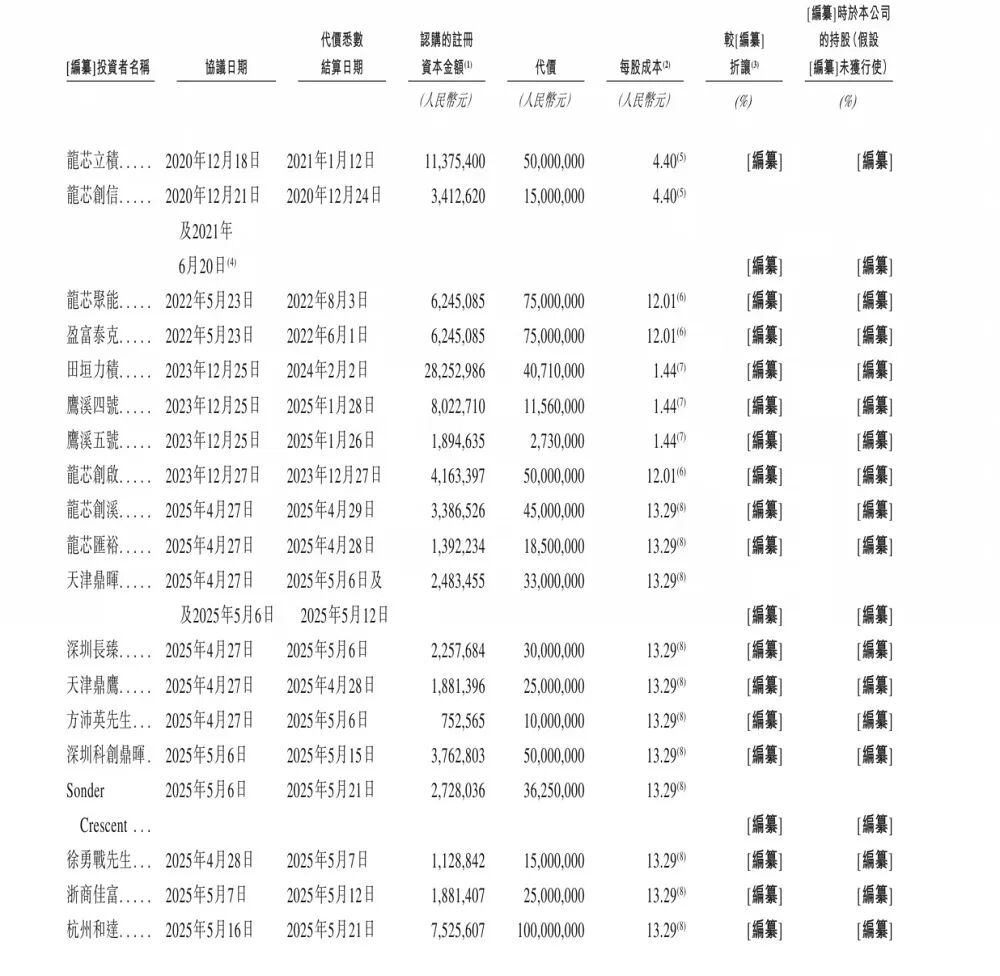 其历次融资总表如下: