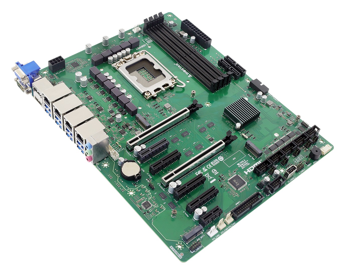 在其它扩展性方面,BIW88-AHS / BIQ87-AHS 包含 4 个 2.5GbE RJ45 网口(其一源自英特尔 I226-LM,支持 vPro 功能),后置 I/O 面板包含 1 个 VGA 接口、1 个 RS-232/422/485 串口,板内还提供 5 组串口接针。