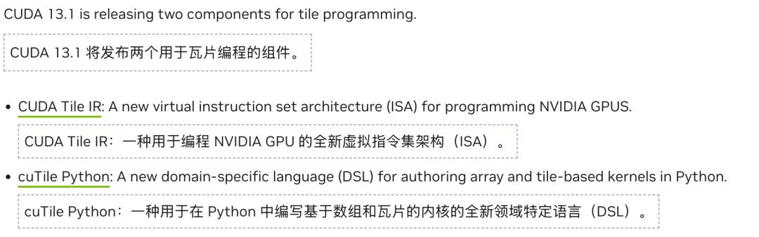 其中,最核心也是最颠覆性的更新的就是CUDA Tile,让开发者可以用Python代替C++写内核代码。