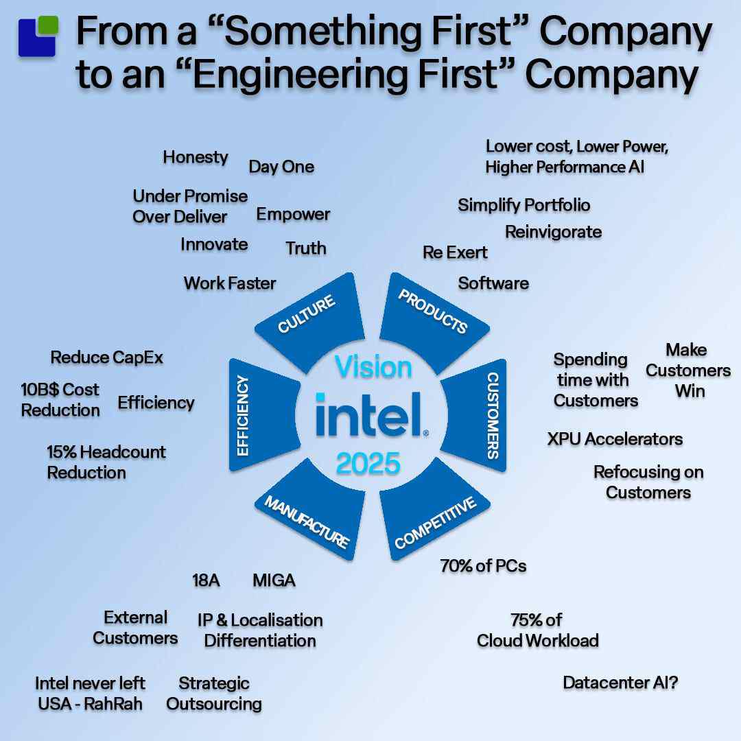 分拆代工业务的呼声:陈立武在出任 CEO 前就曾因主张剥离代工业务与基辛格意见不合而辞职。他被重新聘用,被认为是董事会倾向于分拆代工业务以进行价值重估的信号。