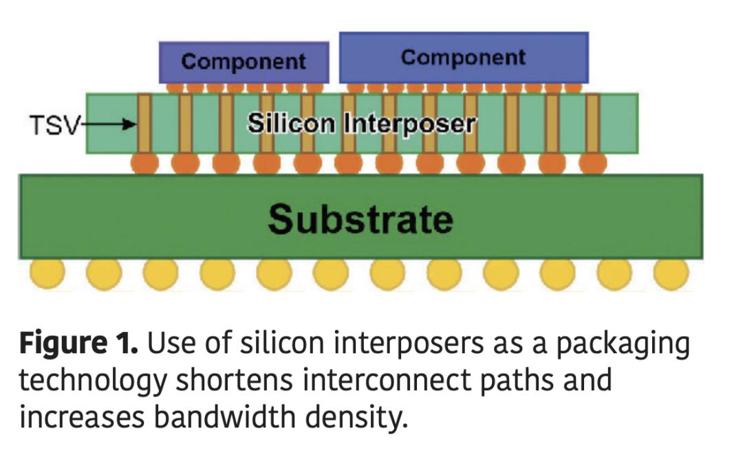 中介层通常由三种材料制成:硅、玻璃或有机衬底。中介层完全由代工厂制造(台积电是主要供应商),包括与封装衬底和半导体芯片键合的硅通孔 (TSV) 和水平互连。中介层可以设计成两种功能:作为有源器件或无源器件。