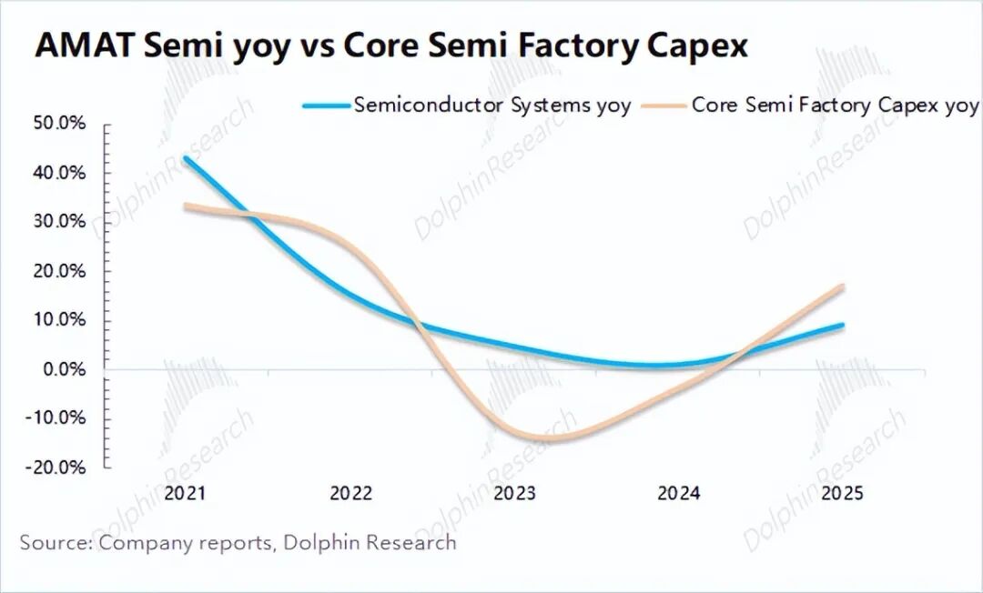 相比于存储类市场,应用材料AMAT的逻辑类业务更为重要,其收入体量也是存储类业务的两倍。如果从资本开支的维度看,明年逻辑类的资本开支增长主要来自于台积电2nm的扩产。