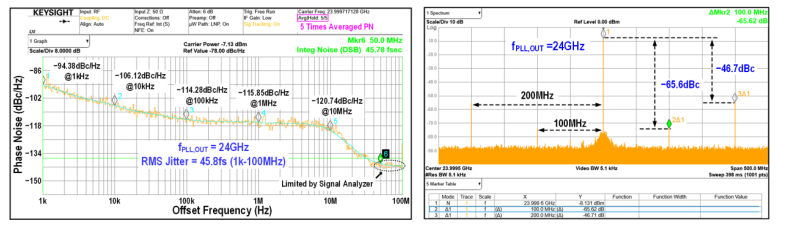 图3 锁相环芯片相位噪声及参考杂散测试性能