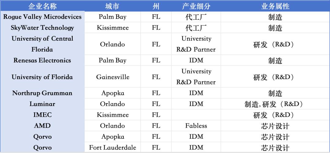 佛罗里达州半导体生态布局情况