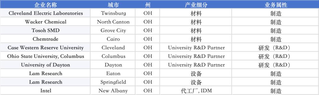 Ohio 以 Intel New Albany 的先进制程与封装项目、Lam Research 的设备制造,以及 Ohio State University 的工艺与器件研究为核心,是美国中部少数兼具“晶圆制造 + 设备 + 大学科研”的区域之一;