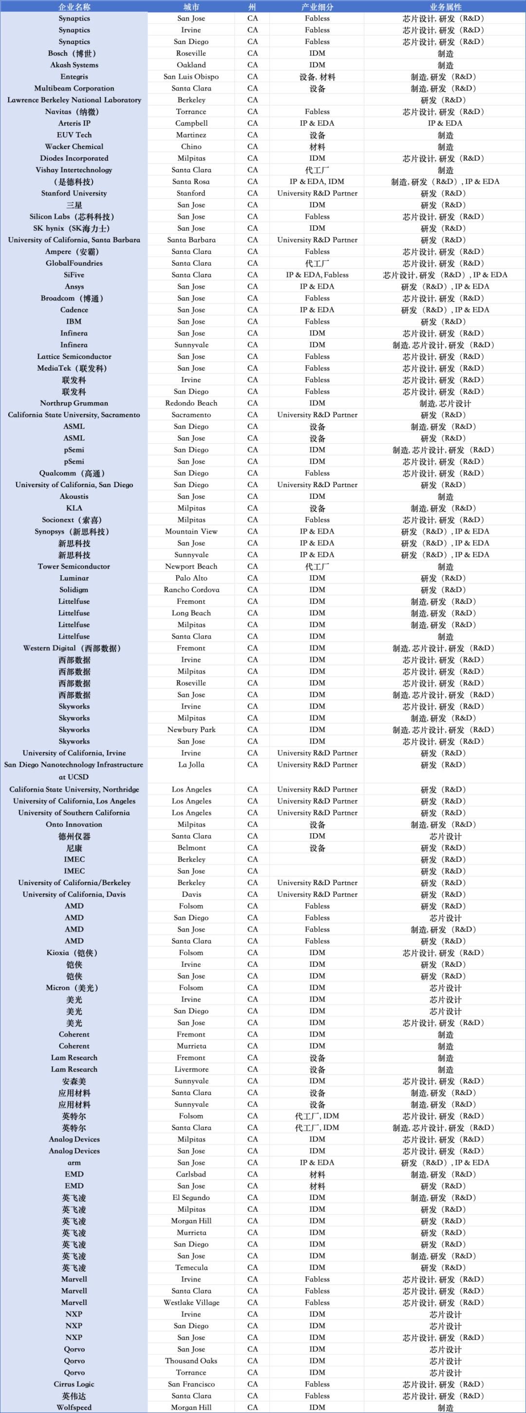 加州半导体生态布局情况
