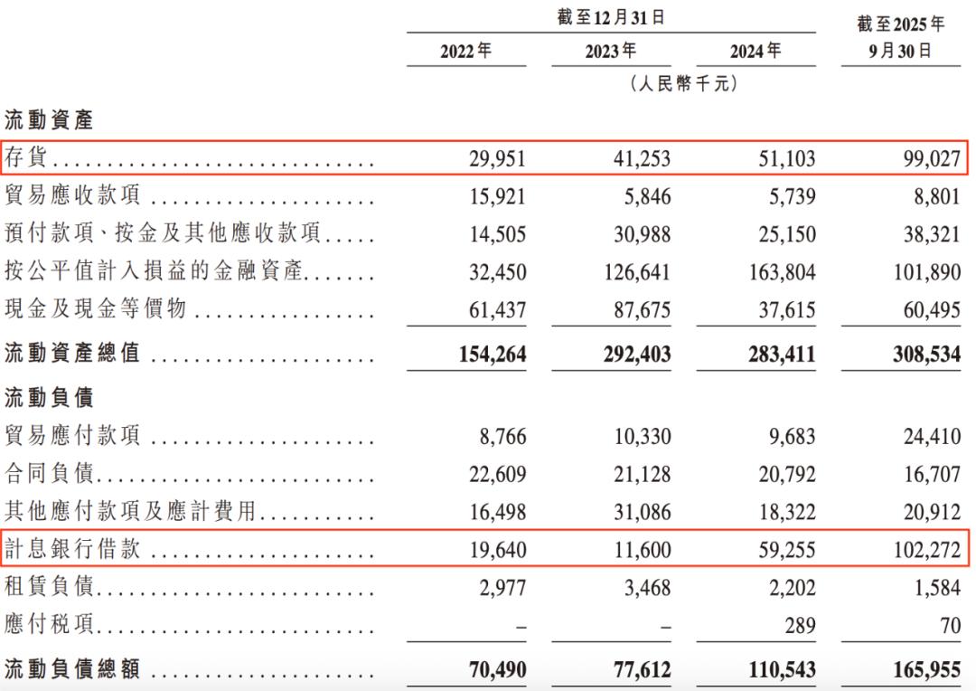 流动资产与负债的结构变化进一步暴露了曦华科技的财务压力。仅2025年前9个月,曦华科技的存货就从2024年末的5110.3万元猛增至9902.7万元,增幅达到93.78%。