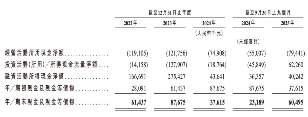 招股书披露,曦华科技在报告期内的经营活动现金流累计净流出约为3.95亿元,即便2025年前三季度较2023年同期的-1.22亿元有所改善,仍录得-7944万元的净流出,尚未实现正向循环。