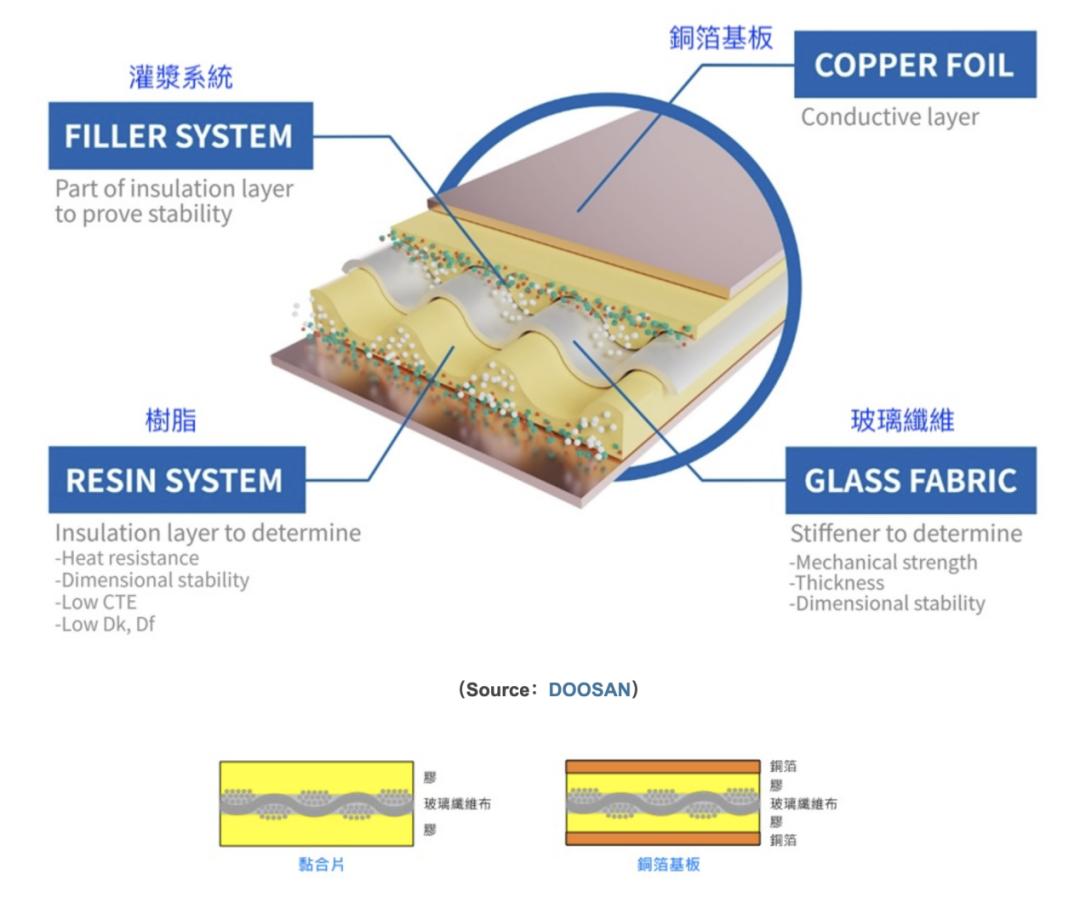据介绍,玻纤布是一种由玻璃纤维纱编织而成的制品,具备绝缘性、耐热性、高强度等特性。由于制造铜箔基板(CCL)时,主要是用铜箔和非导电复合材料(如玻纤布、环氧树脂)热压而成,因此玻纤布可说是铜箔基板的关键原料。