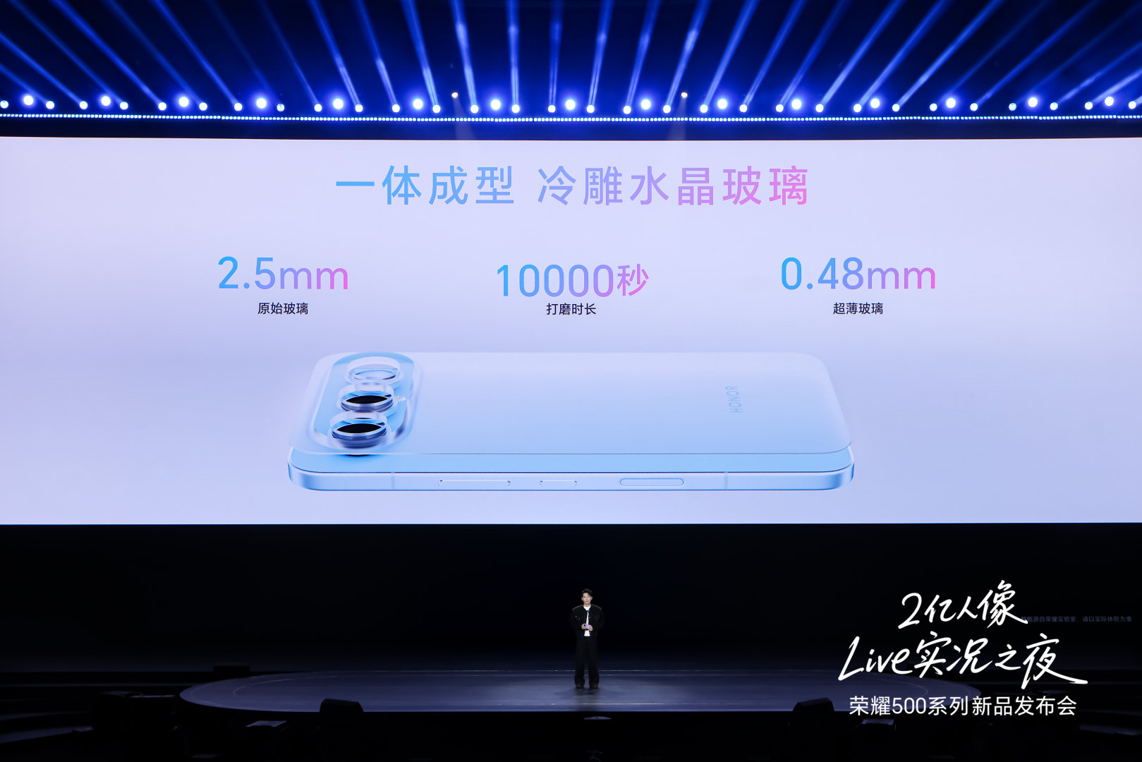 从工艺上看,荣耀500系列首次将iphone同款的一体冷雕工艺下放至2000元档位,搭配高精度 CNC雕刻与全新水晶岛横置镜头设计,不仅实现了对称美学的视觉平衡,更通过结构优化缩短主板长度、增加电池容量。