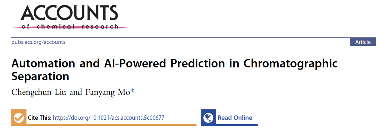 课题组对上述研究工作进行了系统总结,在国际化学领域权威期刊《化学研究评述》(Accounts of Chemical Research)上发表题为“Automation and AI-Powered Prediction in Chromatographic Separation”的综述文章(Acc. Chem. Res., 2025, DOI: 10.1021/acs.accounts.5c00677, IF: 17.7),系统阐述了实验自动化与人工智能推动色谱分离由经验驱动向数据驱动转变的研究历程与发展趋势,为基于合成化学思维和分离手段的技术创新与解决工业生产、药物研发及材料制备领域的实际问题紧密结合提供了有益参考。