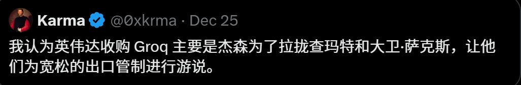 而就在这个言论曝出后没几天,英伟达收购Groq的新闻就曝出了。