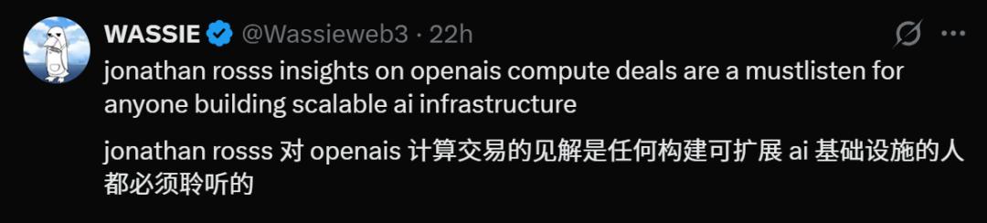 听完这段采访后,网友直言:他对OpenAI算力交易的见解,是所有构建可扩展AI基础设施的人必听的。