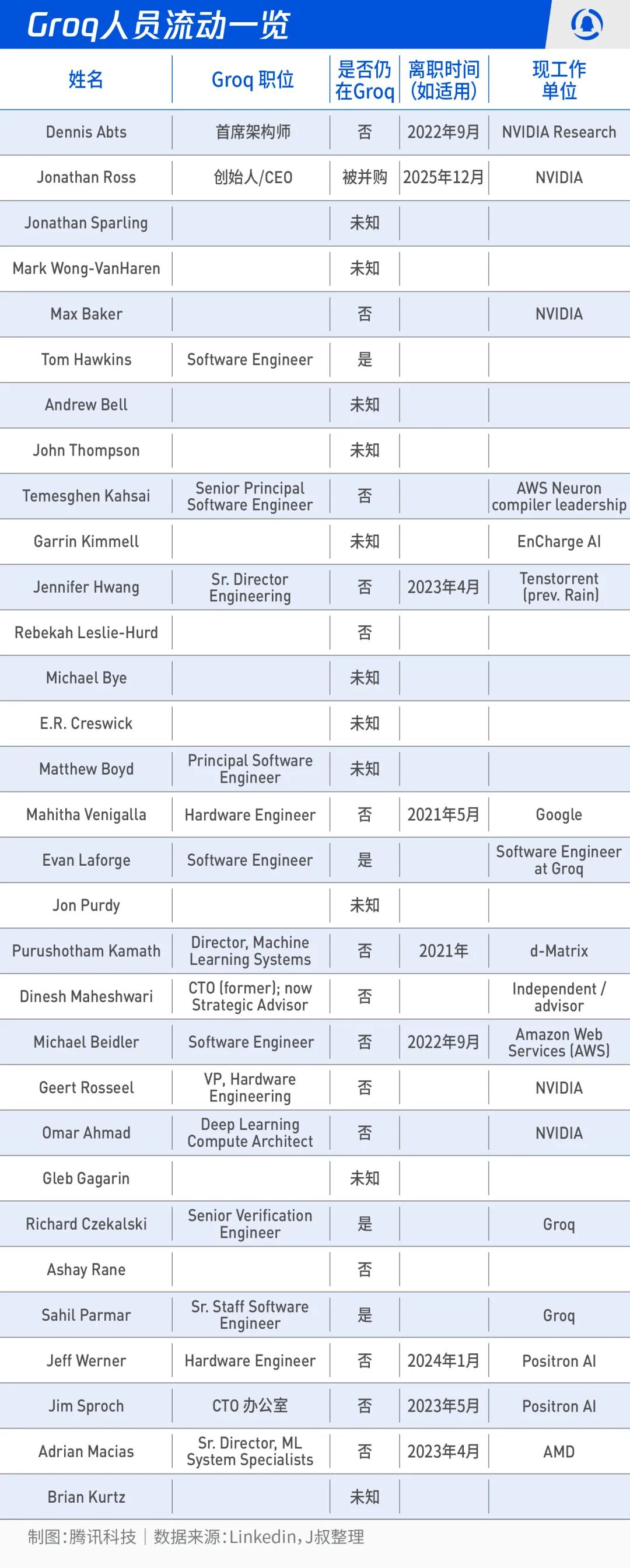 我稍微花了点时间去搜索,除了Jonathan Ross作为创始人还在之外,其中有许多为已经离开,去往NV、Google、Amazon等企业。