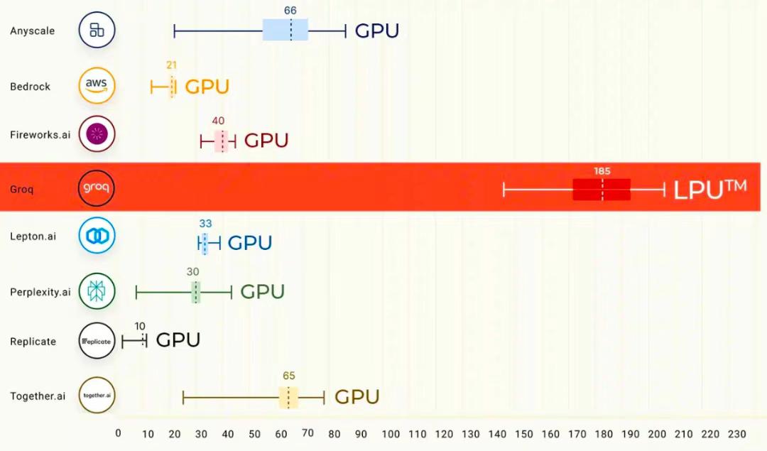 这样的代价换来的是:在单用户推理场景下性能极其出色,Token 生成速度达到市场最快一档。因此 Groq 主打“规模化部署下的高推理速度”这一卖点。