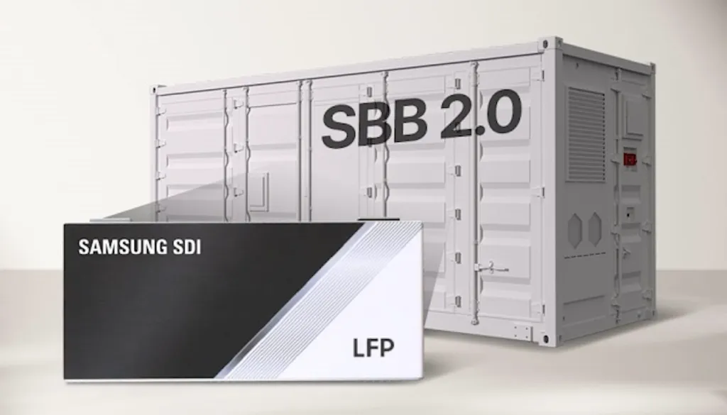 得益于其封装形式,三星方形磷酸铁锂电池同样适用于电网级分布式能源项目。每台三星电池箱(SBB)都集成了多组电池架、电池管理系统以及热管理系统(兼具冷却与消防安全功能),并被整体封装进标准 20 英尺集装箱中,可实现快速便捷部署。