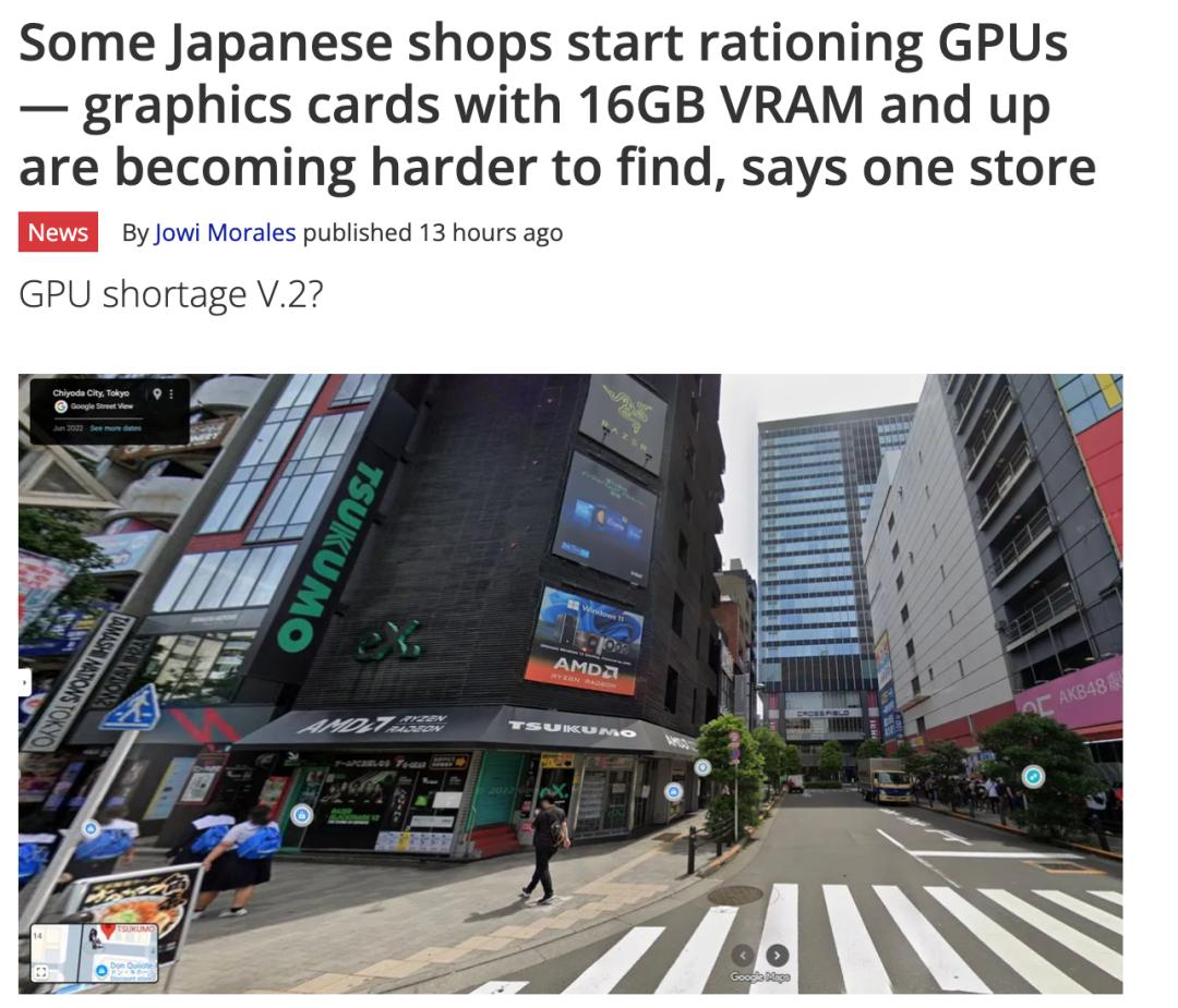 同样受全球内存紧缺外溢影响,日本部分PC零售商已开始对显卡实施限购。