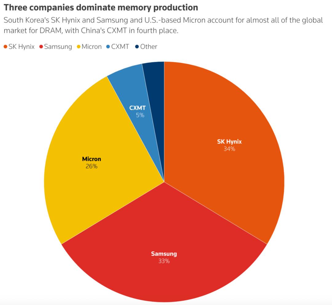 这一采购直接锁定了,每月高达90万片DRAM晶圆供应,相当于DRAM月度产量的40%。