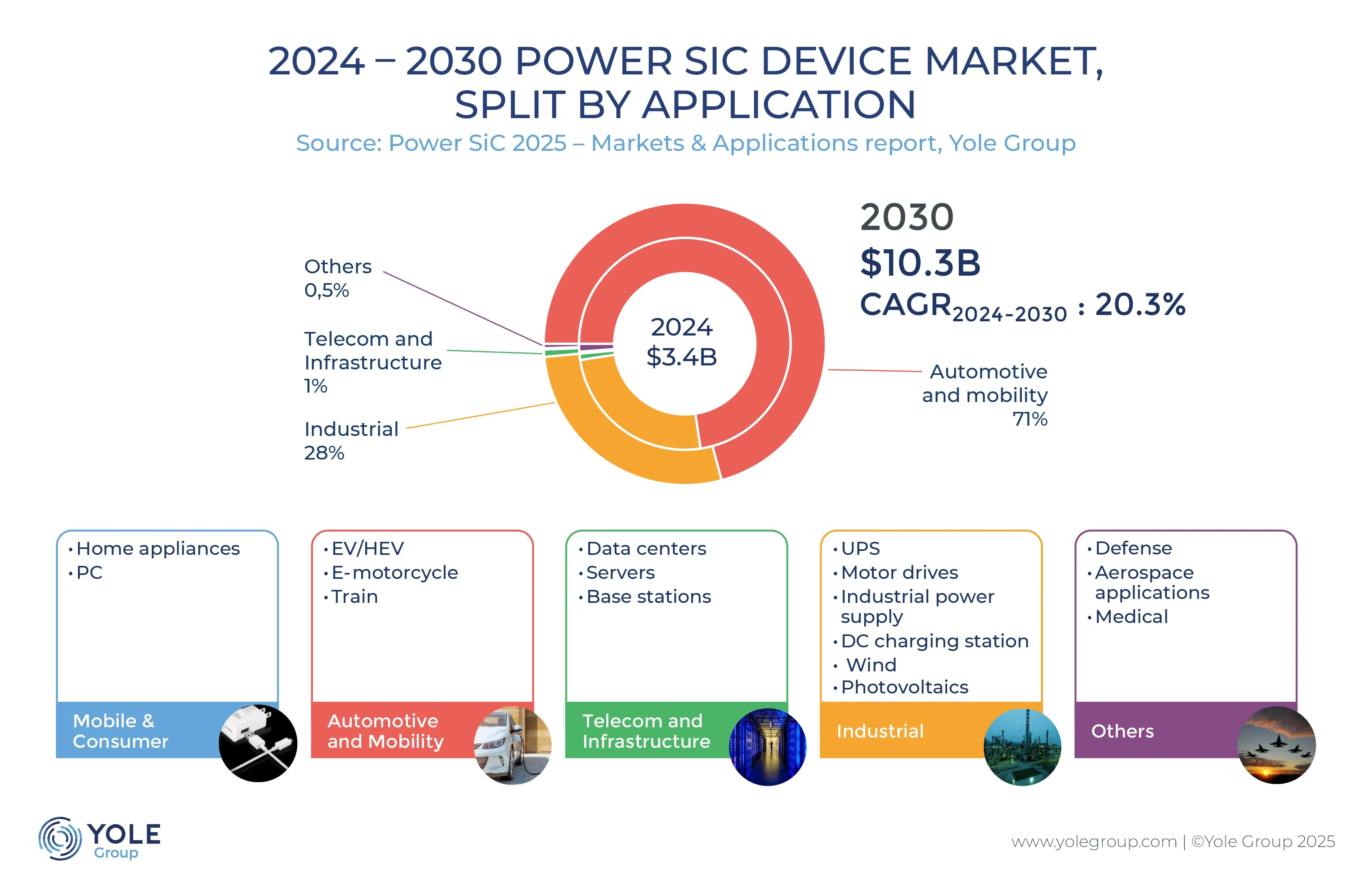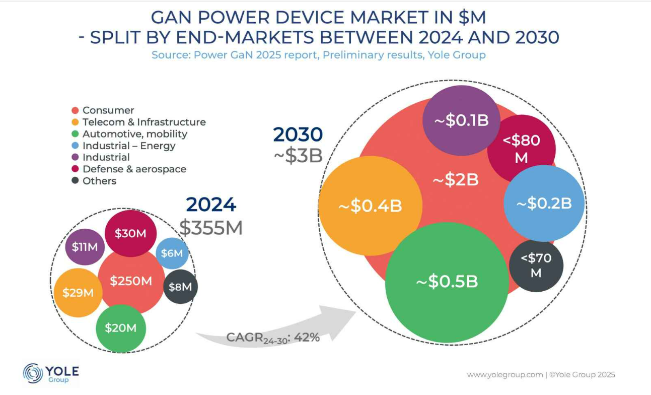 在SiC市场,汽车应用尤其是纯电动汽车逆变器始终是核心增长引擎,据Yole Group分析师预测,尽管2024-2025年纯电动汽车市场增速放缓,但未来五年功率SiC市场规模仍将达到100亿美元,800V快充技术的普及更是成为推动市场增长的重要趋势。2025年3月,中国领先电动汽车制造商比亚迪推出超级电子平台,实现1MW充电功率,5分钟即可补充400公里续航里程,其SiC器件均由旗下半导体部门自主研发生产,成为行业技术突破的重要标杆。不过2025年年中,SiC市场也经历了显著波动,受电动汽车市场增速放缓与中国SiC器件制造商竞争加剧影响,美国SiC晶圆制造商Wolfspeed于6月申请破产保护,直接导致其客户瑞萨电子退出SiC市场,日本SiC厂商JS Foundry也于7月跟进申请破产,直至9月Wolfspeed完成破产重组才重新启动业务。