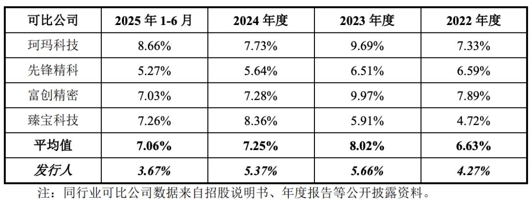 超纯股份的研发费用率低于可比上市公司水平,招股书显示,主要系超纯股份当前业务发展阶段不同,业务规模小于可比公司,研发人员数量与同行业可比公司相比较少,其次该公司从事的研发活动特性导致材料投入相对较低。
