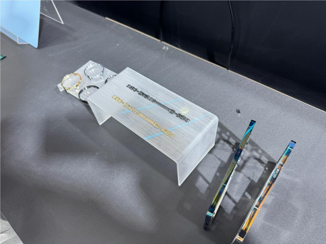 但托尼又猛的瞥见他们展台上放着两块魅族 20 Infinity 的中框,后来跟他们工作人员聊起来才知道这是他们做的表面涂层 ( PVD )。