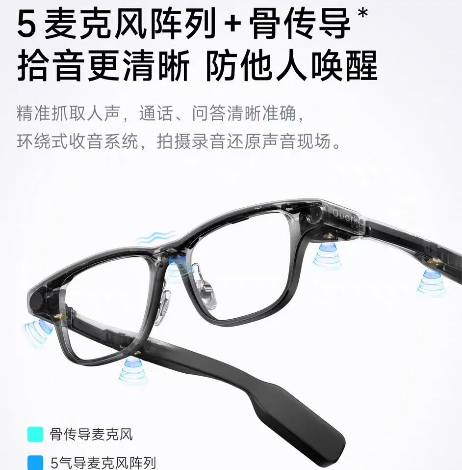 除了收购 Dispelix,瑞声原本的业务线也在吃 AR 眼镜的生意 —— 就比方说最近夸克刚出的 AI 眼镜就采用了瑞声的 5 麦克风 + 骨传导解决方案,嘈杂环境中也能捕获使用者的指令,不会想用的时候喊不出来。