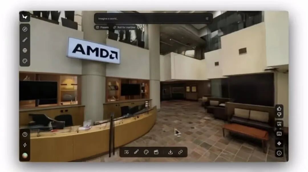 World Labs团队前往AMD的硅谷办公室,使用普通的手机摄像头捕捉了图像,基于其工具构建了AMD办公室的3D世界。