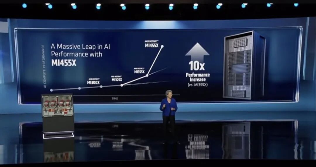 她还当场剧透了AMD两年芯片路线图:下一代MI500系列有望在2027年推出,核心亮点包括基于CDNA 6架构、搭载HBM4e、采用2nm工艺。