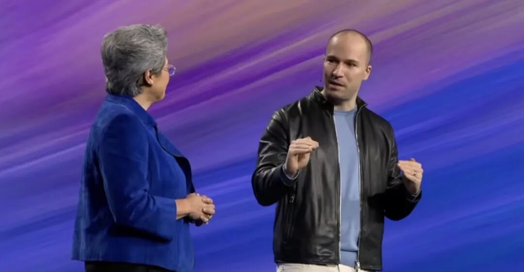 ▲AMD董事会主席兼CEO苏姿丰(Lisa Su)、Woeld Labs联合创始人兼CEO李飞飞、OpenAI联合创始人兼总裁格雷格·布罗克曼(Greg Brockman)Luma AI首席执行官兼联合创始人阿米特·贾因(Amit Jain)、Liquid AI CEO拉明·哈萨尼(Ramin Hasani)(从左至右)