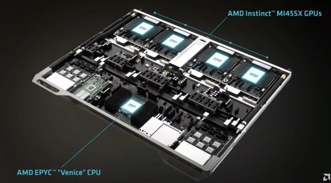 此外还有专为AI设计的2nm EPYC Venice Zen6 CPU,其搭载256个Zen 6核心,在机架规模下也能全速为MI455X提供数据。
