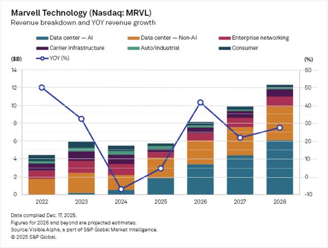 分析师认为,市场当前对 Marvell 2026 财年 / 2027 财年约 100 亿美元的一致营收预期,尚未充分计入这部分增量收入。