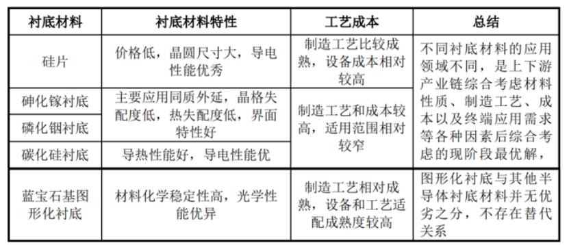 几种衬底材料的主要对比情况,来源:招股书