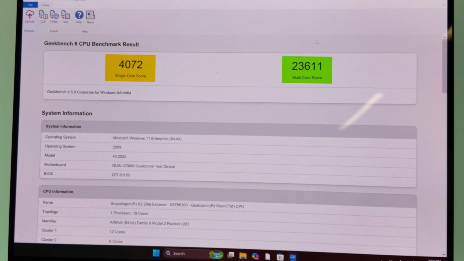 科技博主 Alex Ziskind 分享了高通骁龙 X2 Elite Extreme X2E-96-100 芯片的 GeekBench 跑分,在 6.5.0 版本中单核成绩为 4072 分,多核成绩为 23611 分。该芯片采用了 18 核心设计,基础频率 3.6 GHz,加速频率飙升至 5.0 GHz,热设计功耗(TDP)为 82W。