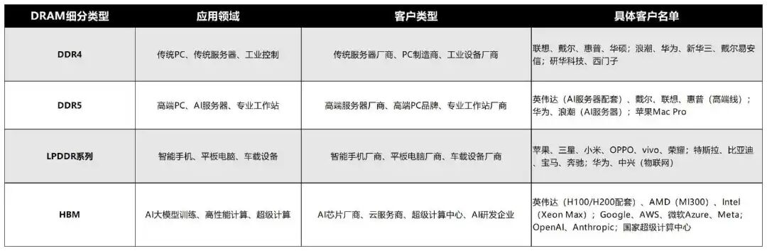 比如DRAM,在目前的市场中,就有四个细分产品类型: