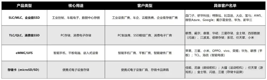 NAND闪存同样在市场有四个细分场景,包括企业、消费级SSD(常说的固态硬盘),便携式SD存储卡等。