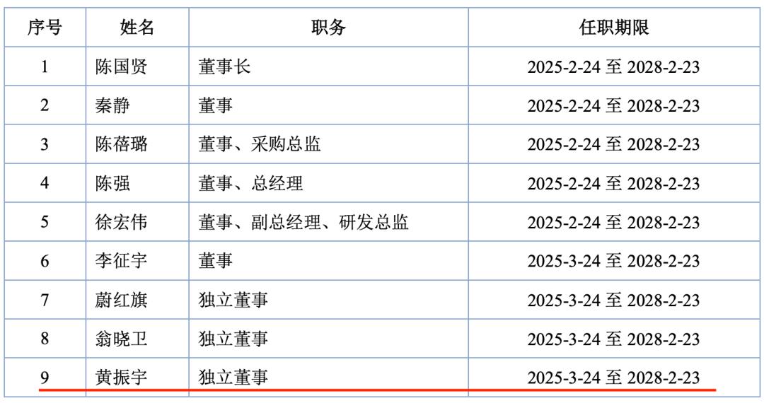 图 / 赛英电子招股书中的董事会成员及任职期限