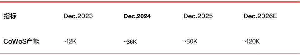 从我们掌握的情况来看,过去三年,台积电CoWoS产能一路从单月12K晶圆,逐步爬升至2025年底的80K/月,2026年年底的预估目标是120K/月左右。
