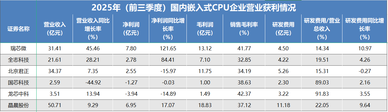对于技术密集型的嵌入式CPU行业而言,A+H布局的价值不仅在于拓宽融资渠道,更在于提升企业国际化融资能力与品牌影响力,为技术研发与全球化布局注入动能。从业务基础来看,晶晨股份2025年前三季度营收达50.71亿元,净利润6.95亿元,创下历史同期新高,研发费用同比增长9.64%,其智能终端SoC芯片累计出货量超10亿颗,在消费电子嵌入式CPU领域占据优势地位,港股上市募资计划重点用于提升研发能力与全球客户服务体系建设;北京君正则凭借“计算+存储+模拟”协同优势深耕车规级与AIoT赛道,2025年前三季度营收34.37亿元,净利润2.43亿元,募资将聚焦技术研发与战略收购,助力高算力嵌入式芯片的研发攻坚。两家企业的A+H布局有望引发示范效应,带动行业内其他企业通过多元化融资方式汇聚资金,为国产嵌入式CPU在先进制程、生态建设等关键环节的突破提供资金保障,加速国产替代进程。