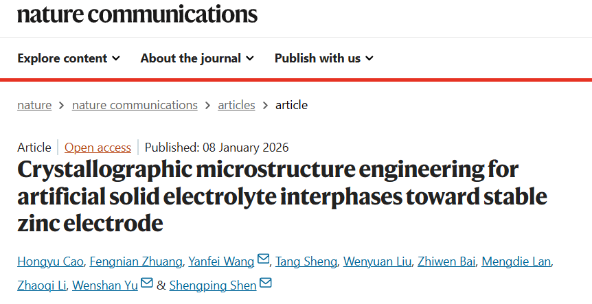面对上述挑战,西安交通大学航天航空学院力化学耦合与智能介质实验室申胜平教授团队独辟蹊径,将ASEI设计的视角从传统的“化学成分优化”转向“晶体学微结构特征精准调控”。研究发现,ASEI的单一晶体学微结构特征(如晶体取向、晶界密度)存在抑制枝晶的临界最优状态。通过有序整合多个最优微结构特征,可实现既定ASEI成分下的力-电-化学机制最优协同,达到枝晶抑制效力极值。该策略兼具高效力与普适性,并能与传统化学调控策略兼容,为构建下一代高稳定性、长寿命的金属电池开辟了新路径。相关研究成果以《面向稳定锌电极的人工固态电解质界面晶体微结构工程》(Crystallographic Microstructure Engineering for Artificial Solid Electrolyte Interphases toward Stable Zinc Electrode)为题发表于《自然通讯》(Nature Communications)期刊。