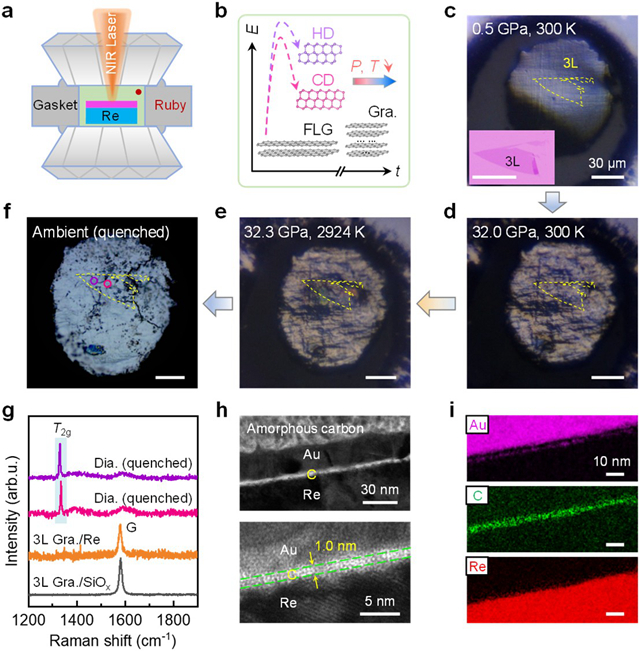 图1. 高温高压条件下三层二维金刚石的可控合成及表征