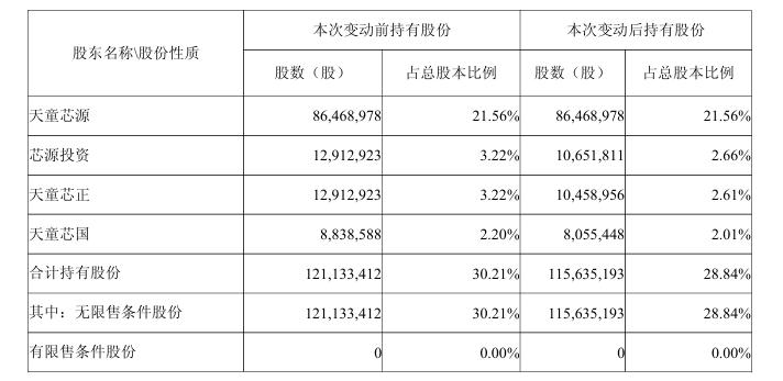 2025年8月,由龙芯中科实际控制人胡伟武和晋红最终控制的三家员工持股平台——芯源投资、天童芯正与天童芯国,宣布以“自身资金需求”为由,计划通过询价转让方式合计减持549.82万股,约占公司总股本的1.37% 。