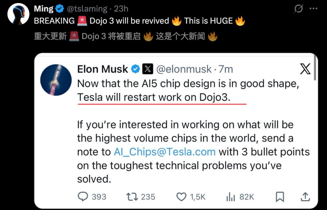 马斯克重磅官宣:AI5芯片步入正轨,Dojo 3项目正式重启!